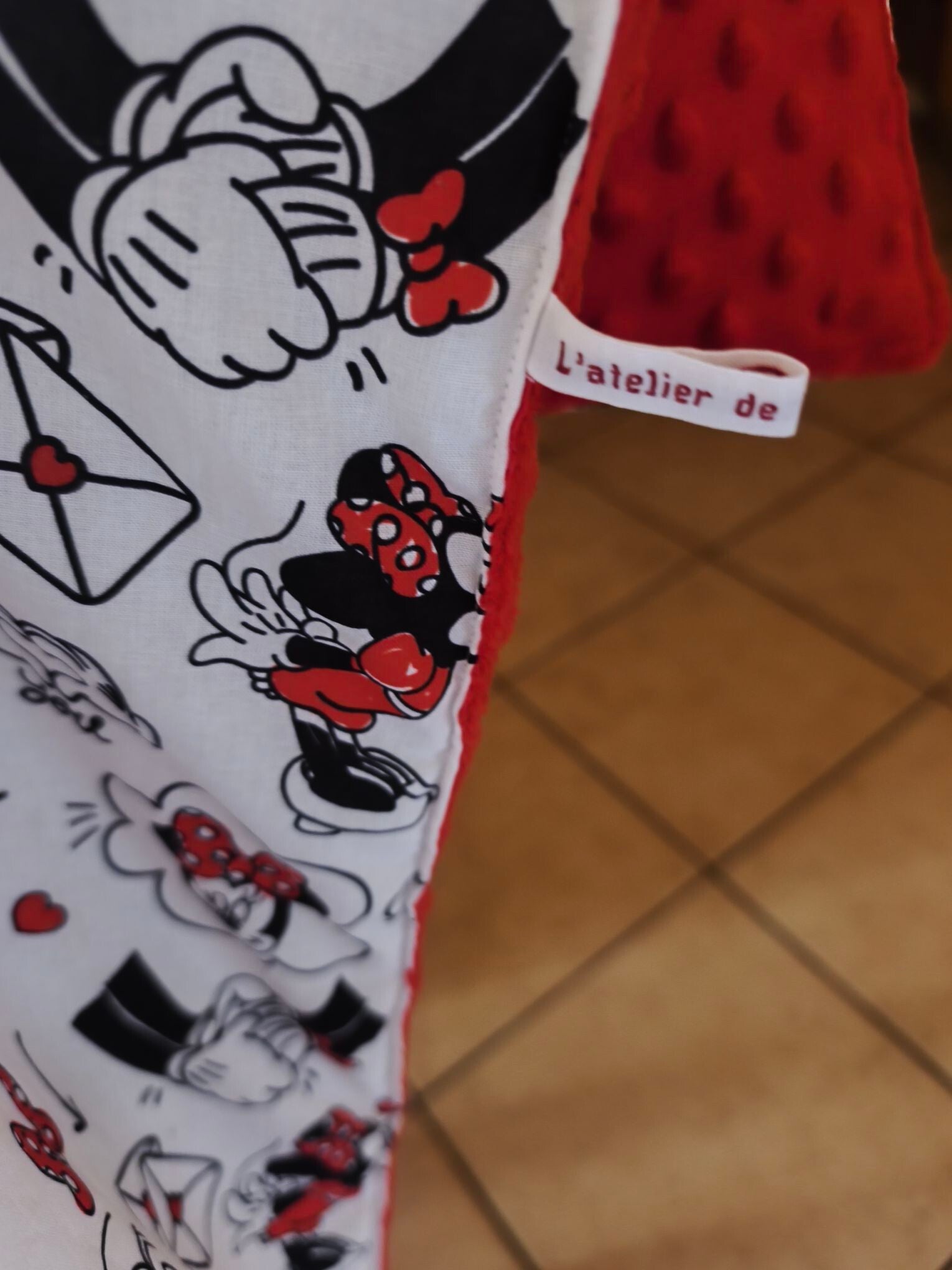 Couverture cousue main avec des tissus Français et en 100% coton. Elle mesure 100 cm de large pour 150 cm de longueur. Elle est compsée :
