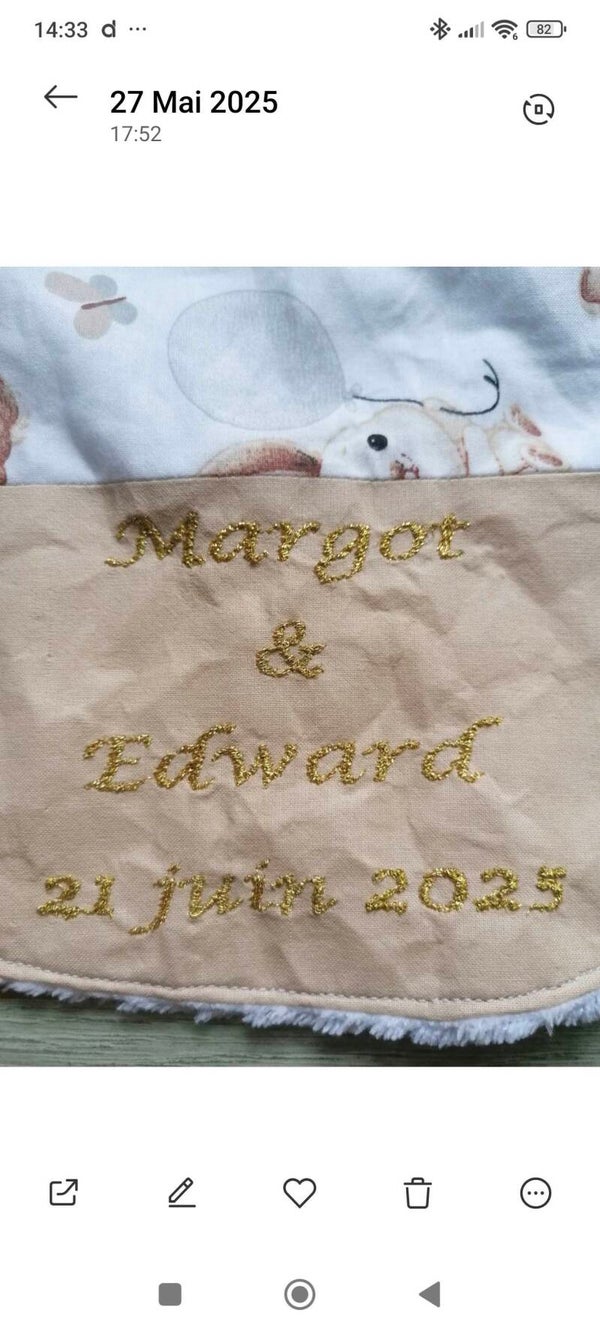 Bavoir cousu main avec des tissus Français! Il est composé d'une face en 100% coton et une face en éponge de bambou pour plus de douceur! Il est fermé par deux pressions pour être évolutif! Cadeau idéal pour une naissance! La personnalisation sera réalisée selon le prénom de l'enfant. Il sera brodé.
