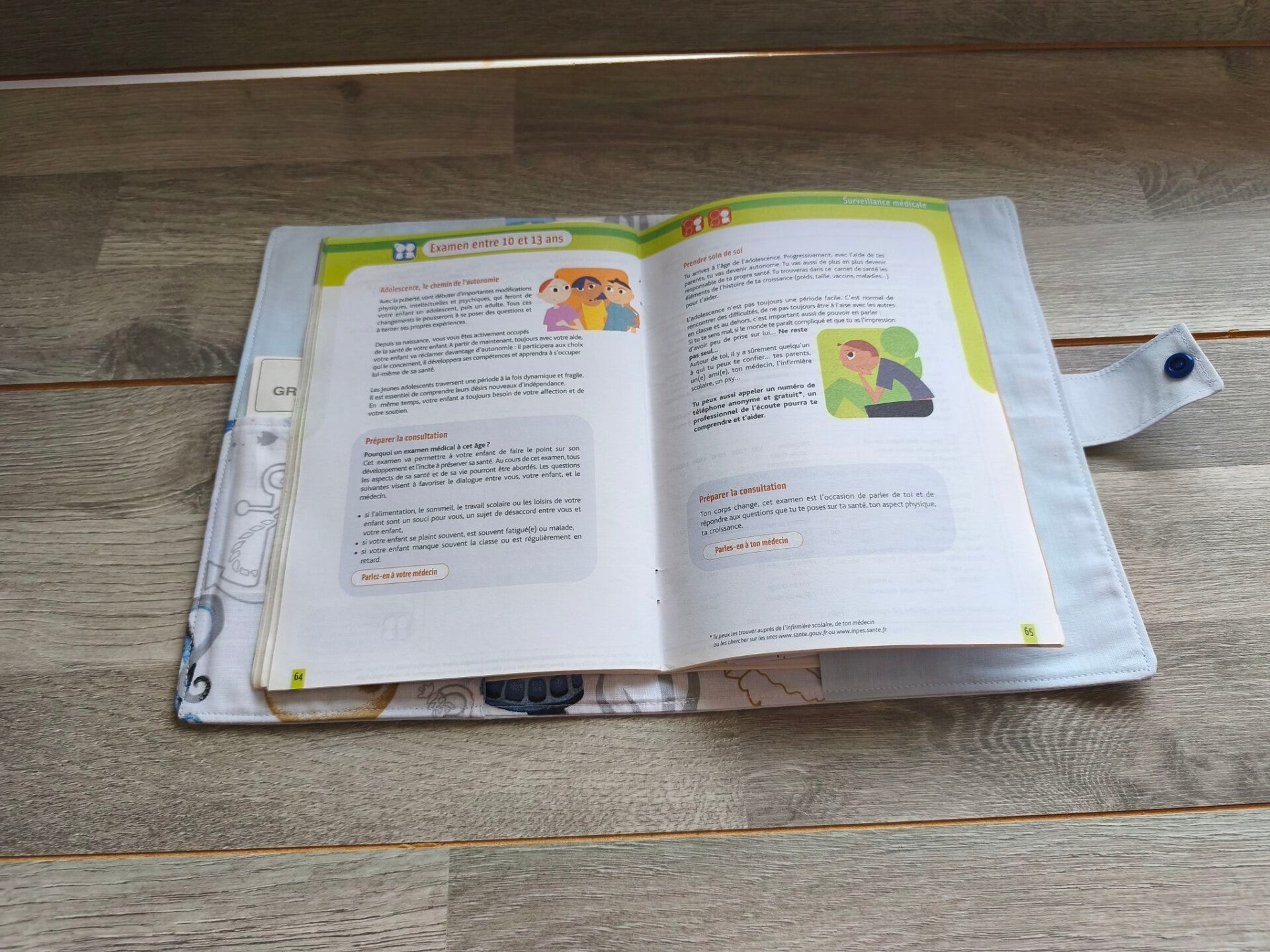 - Un protège carnet de santé en 100% coton donc lavable en machine à laver autant que nécessaire. Il est fermé par une pression. Il possède deux rabats intérieurs pour maintenir le carnet de santé bien en place ainsi qu'une poche intérieure pour y glisser les cartes vitale, groupe sanguin, mutuelle , les ordonnances etc....Fini les pages déchirées, cornées, les ordonnances égarées....