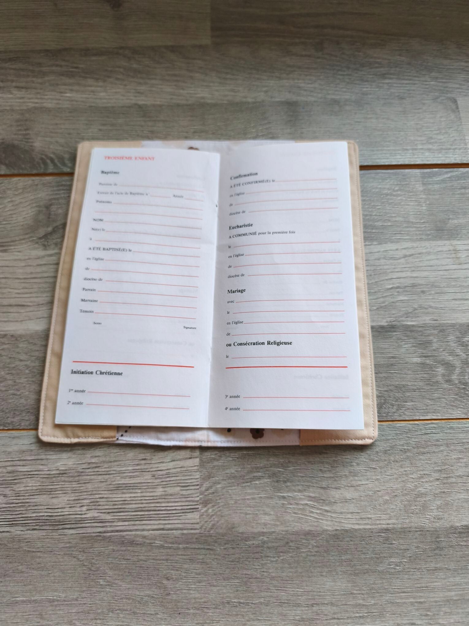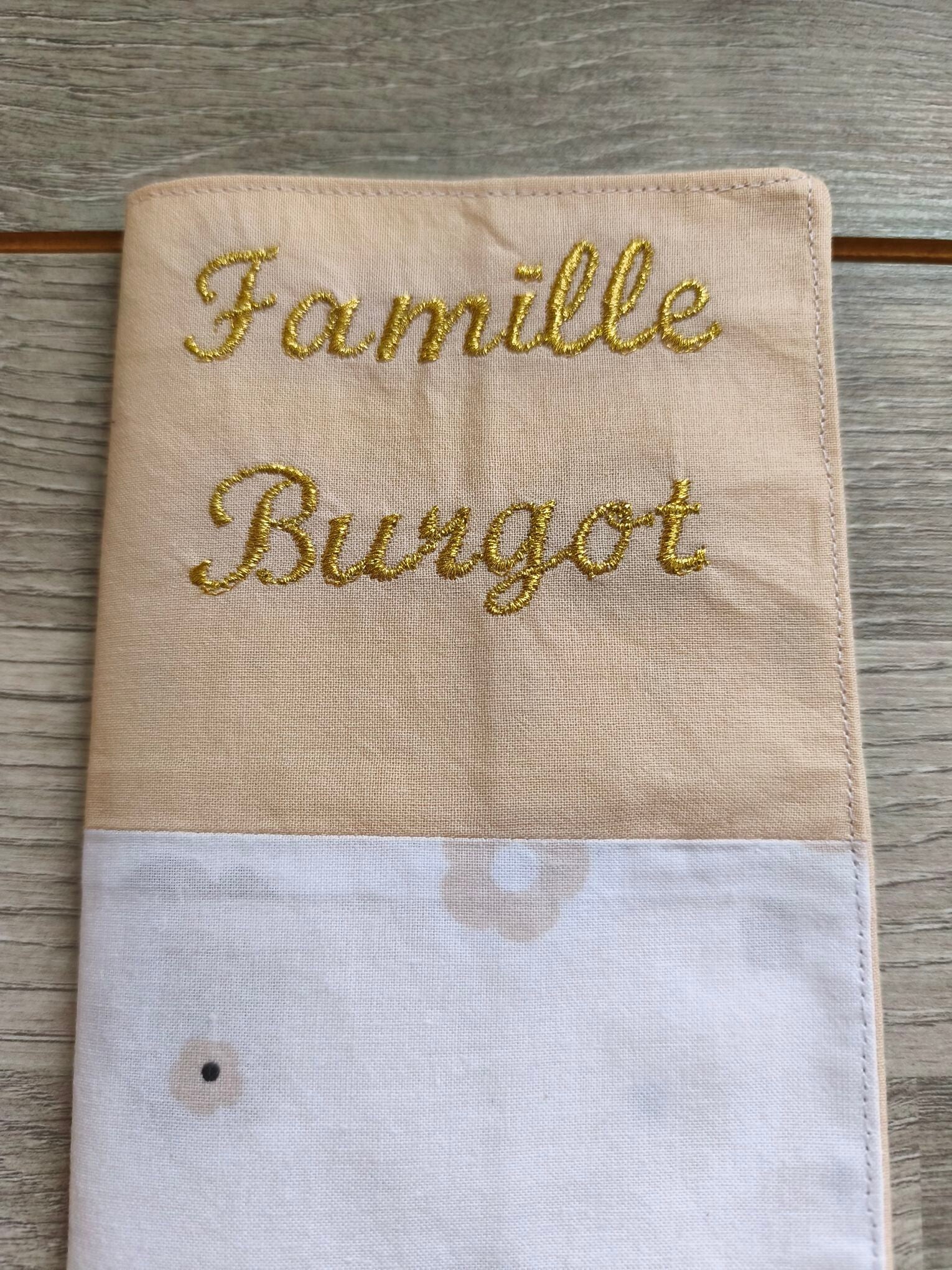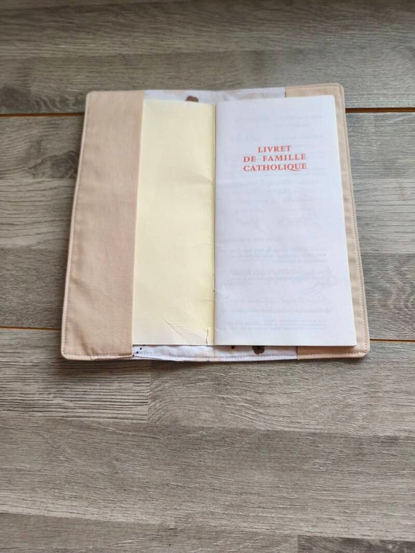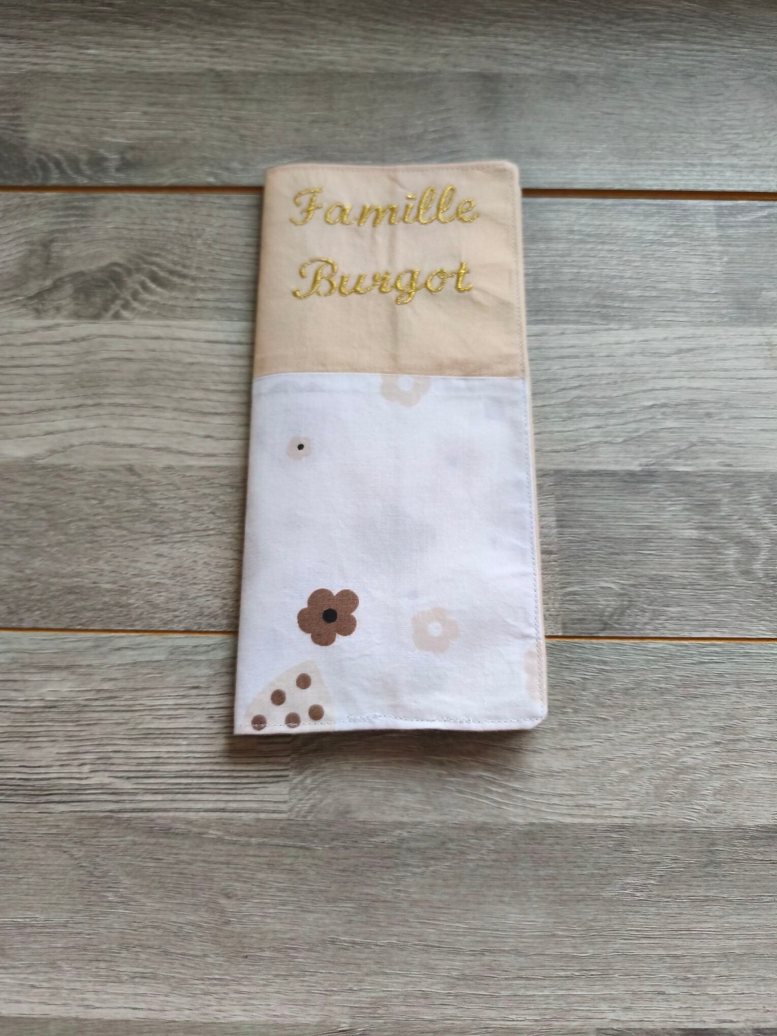 Protège livret de famille cousu main avec des tissus français. Il est en 100% coton donc lavable en machine autant que nécessaire. Il possède deux rabats intérieurs pour maintenir le livret de famille bien en place. Fini les pages cornées, déchirées etc... Cadeau idéal, original et utile pour un mariage. Tarifs : 9.00 euros pièce HFDP si un seul nom de famille, 15 euros HFDP si deux noms de famille. N'hésitez pas à me contacter si besoin